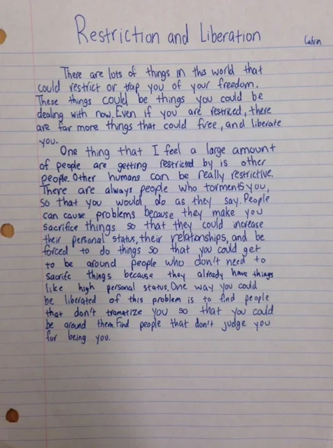 Opinion Writing: "Am I free or not?" by Ethan