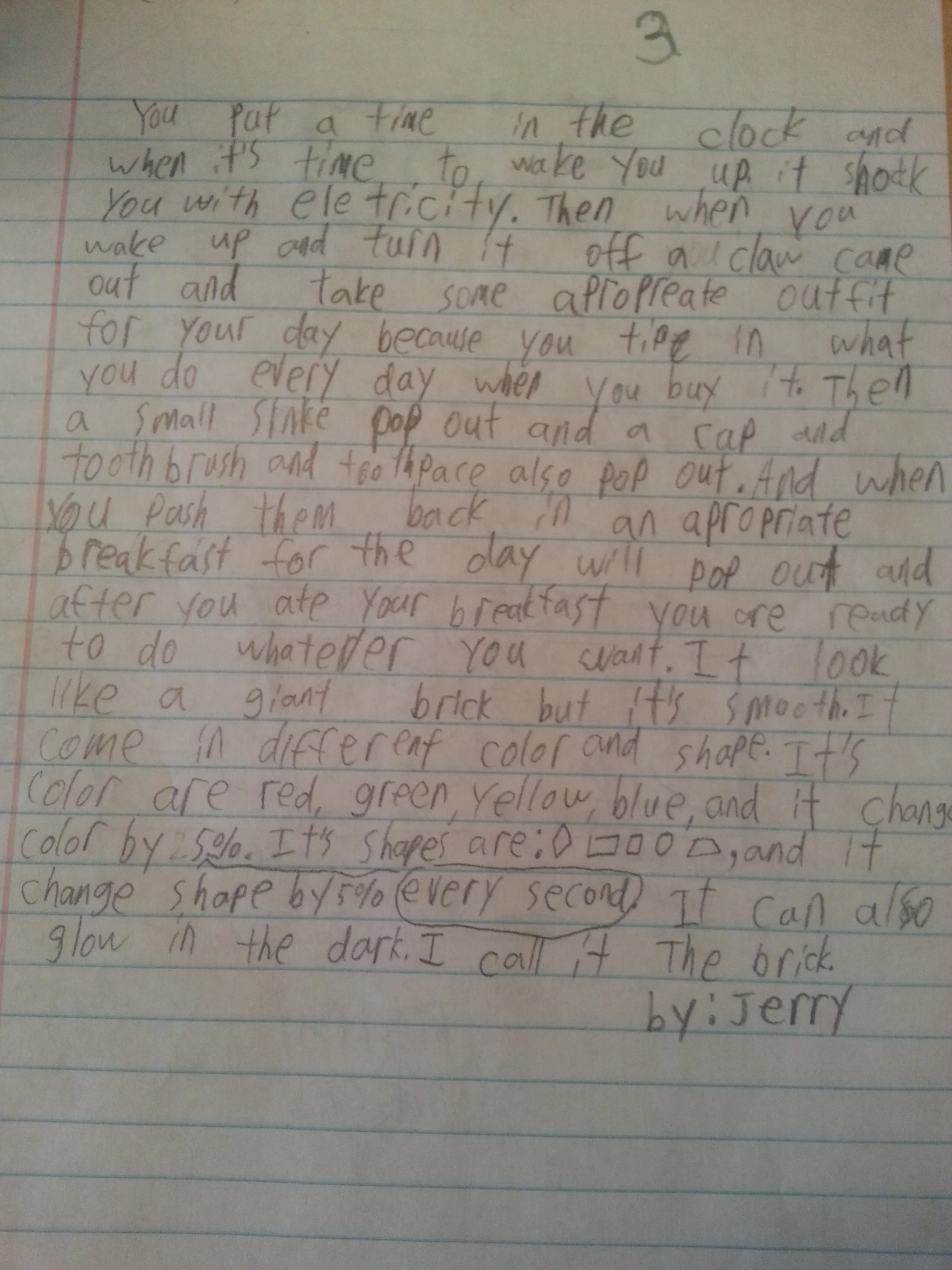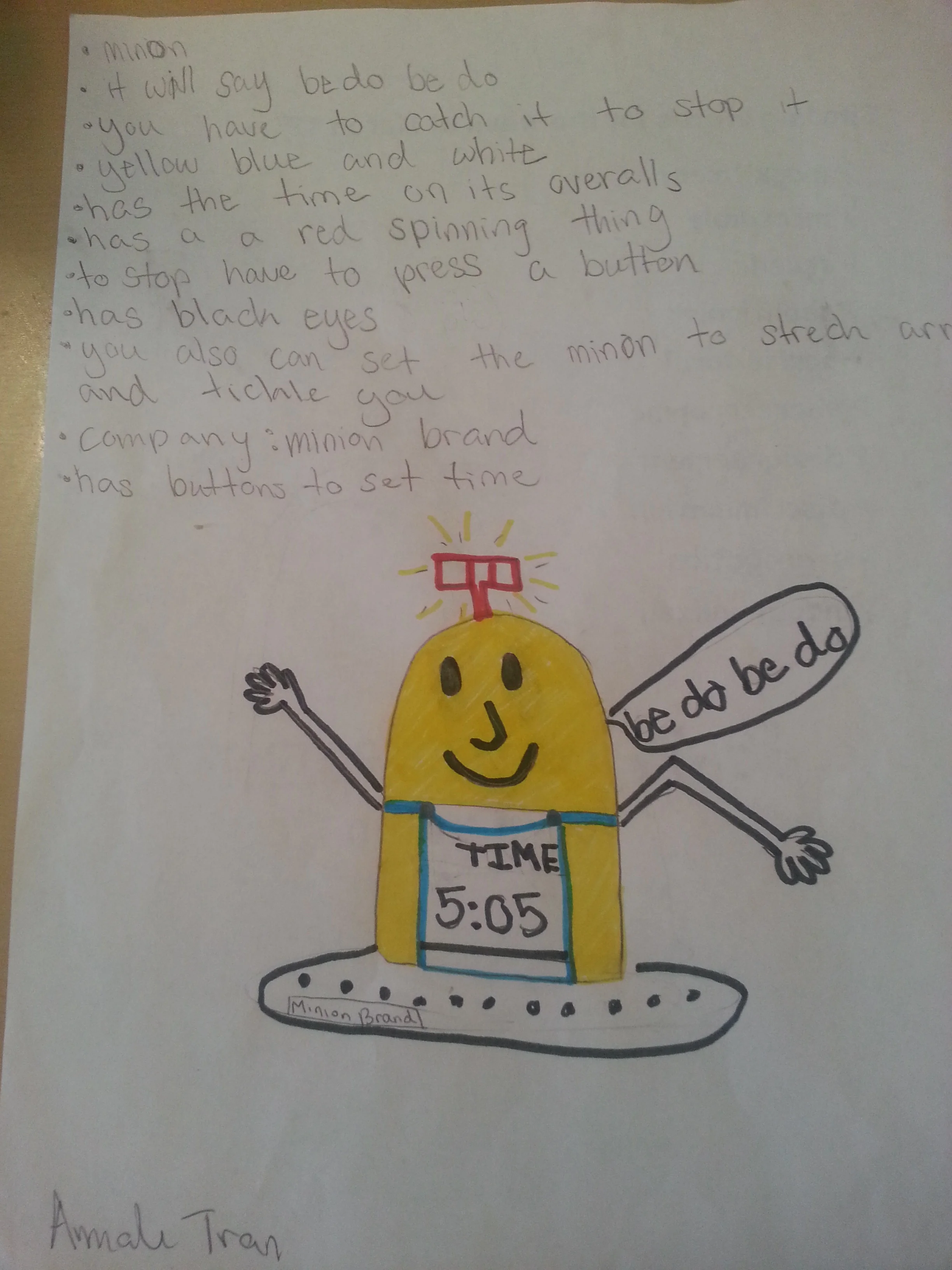 Our winter session students at Oakton Elementary in Northern Virginia were asked to create an original alarm clock and write about how it works. The Minion Clock by Amale The Brick by Jerry Comment
