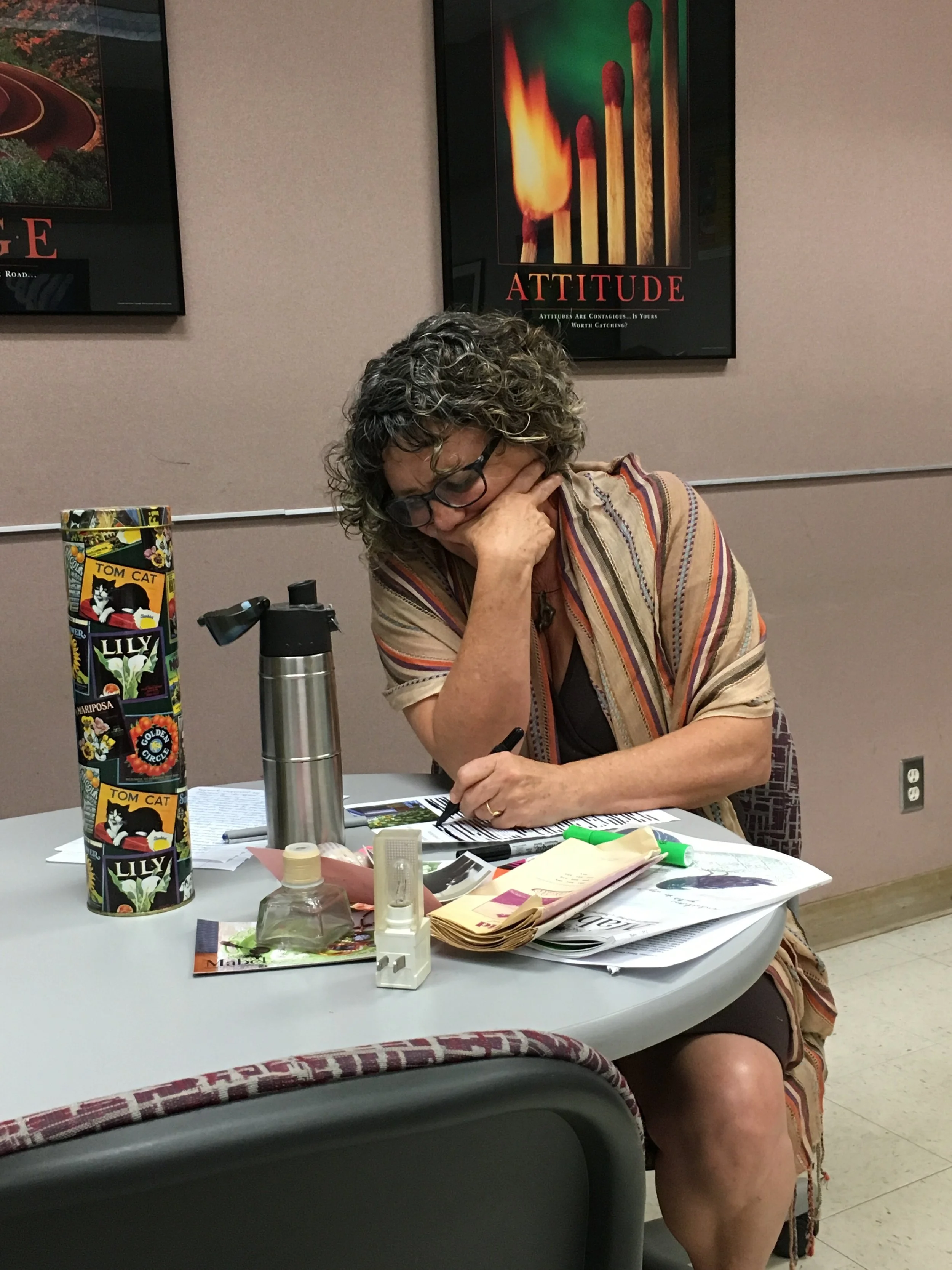We spend the first 45 minutes of each class doing generative writing activities (I call them "Divining Rod Writing Exercises") to access our creativity, stir up our imagination and generate ideas. The rest of class is dedicated to hearing one, or more, women read from a longer piece they're working on and then providing her with constructive feedback.